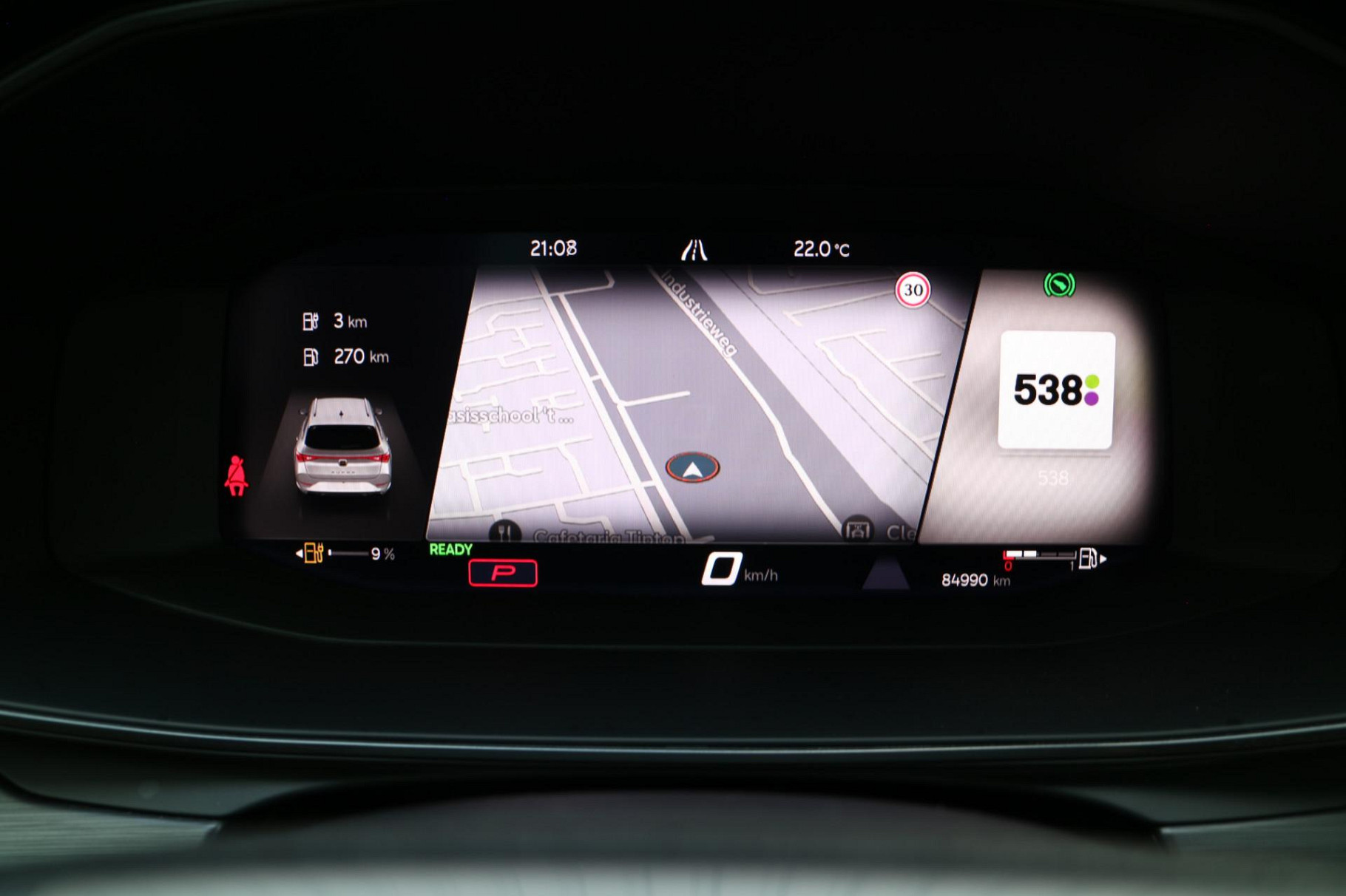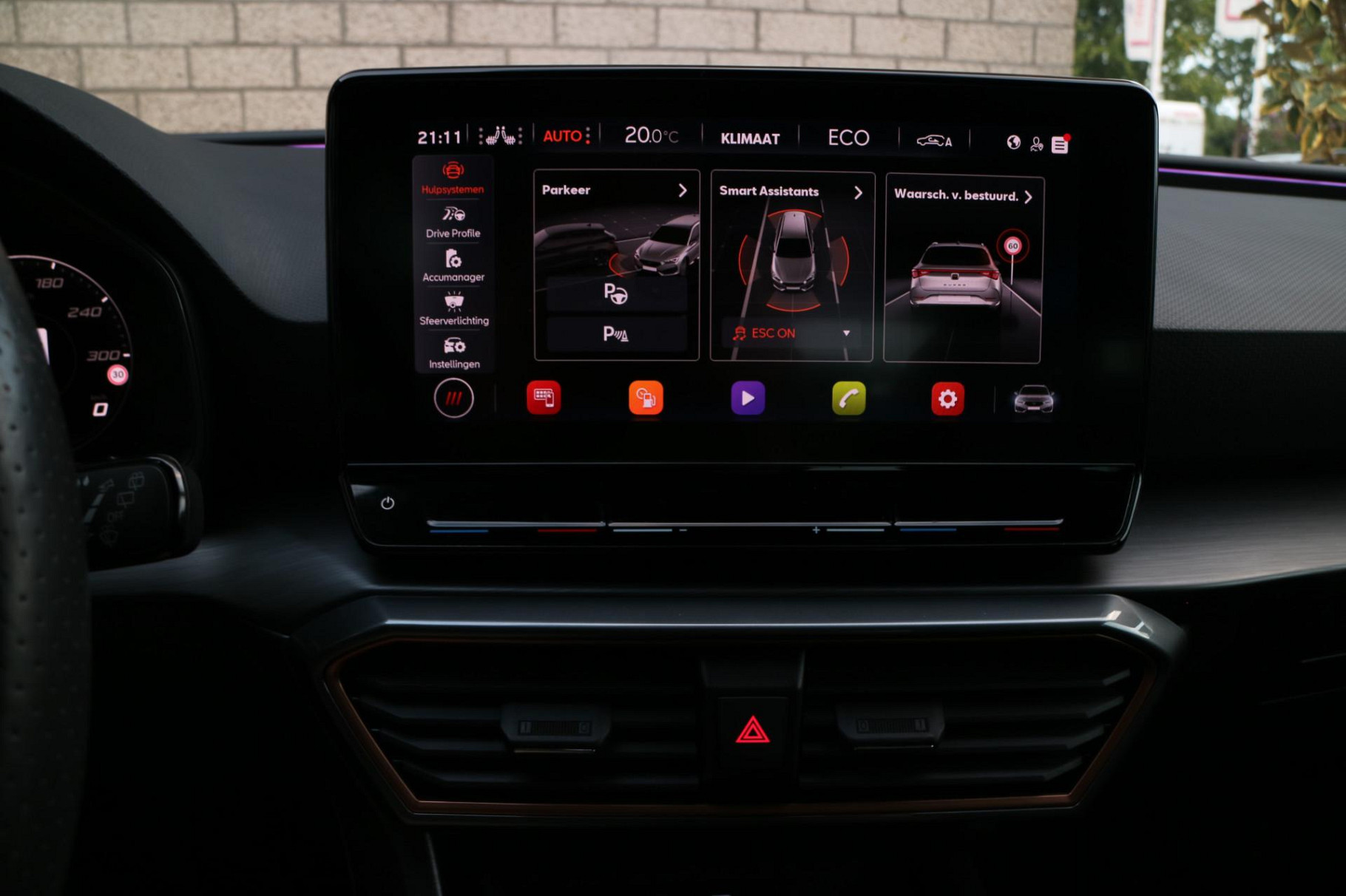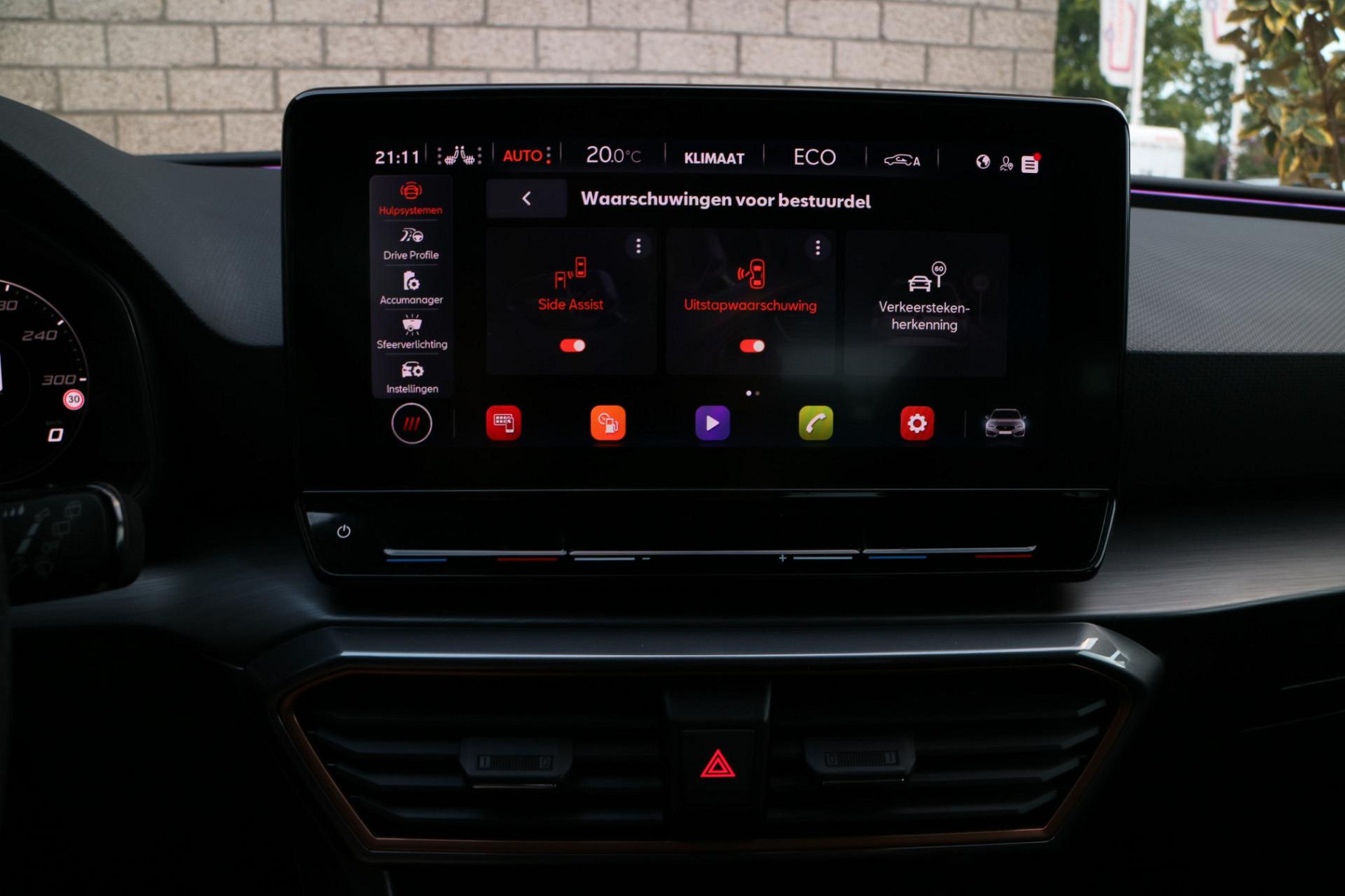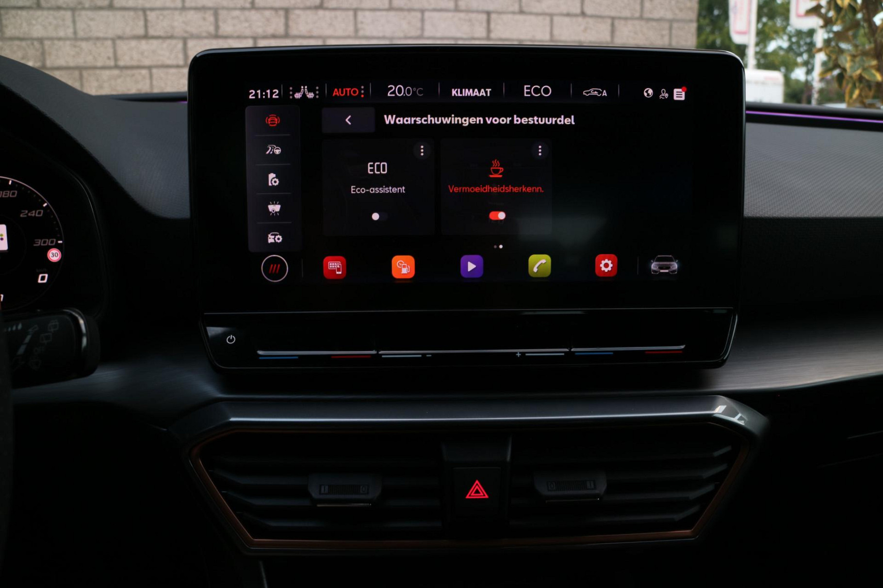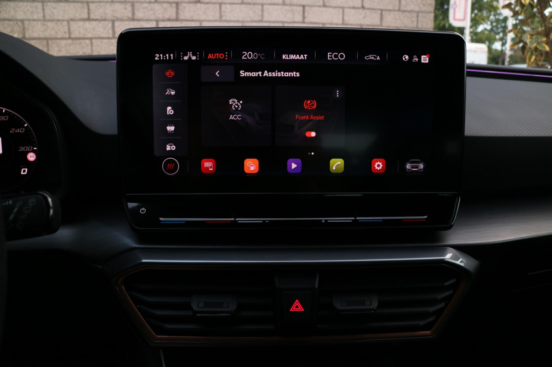 Zoals u mag verwachten van deze CUPRA Leon Sportstourer is hij uitgerust met een reeks aan actieve veiligheidssystemen. Wat deze auto ook kan, is lezen. Hij 'leest' voor u de verkeersborden tijdens de rit en attendeert u erop door ze op het dashboard te projecteren. Ongemerkt buiten de rijstrook raken? Nee hoor, het Lane-keeping systeem waarschuwt en corrigeert. Voor meer veiligheid detecteert deze auto het risico van een aanrijding tijdig via de forward collision warning. Dankzij veiligheidsvoorzieningen als dodehoekdetectie, hill hold functie, vermoeidheidsherkenning, autonoom remsysteem en bandenspanningcontrolesysteem, bent u steeds veilig onderweg.