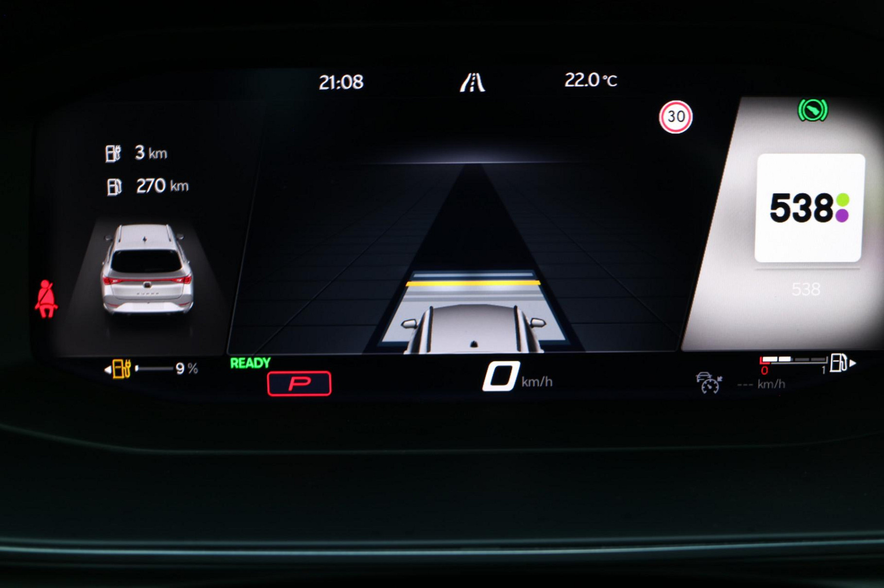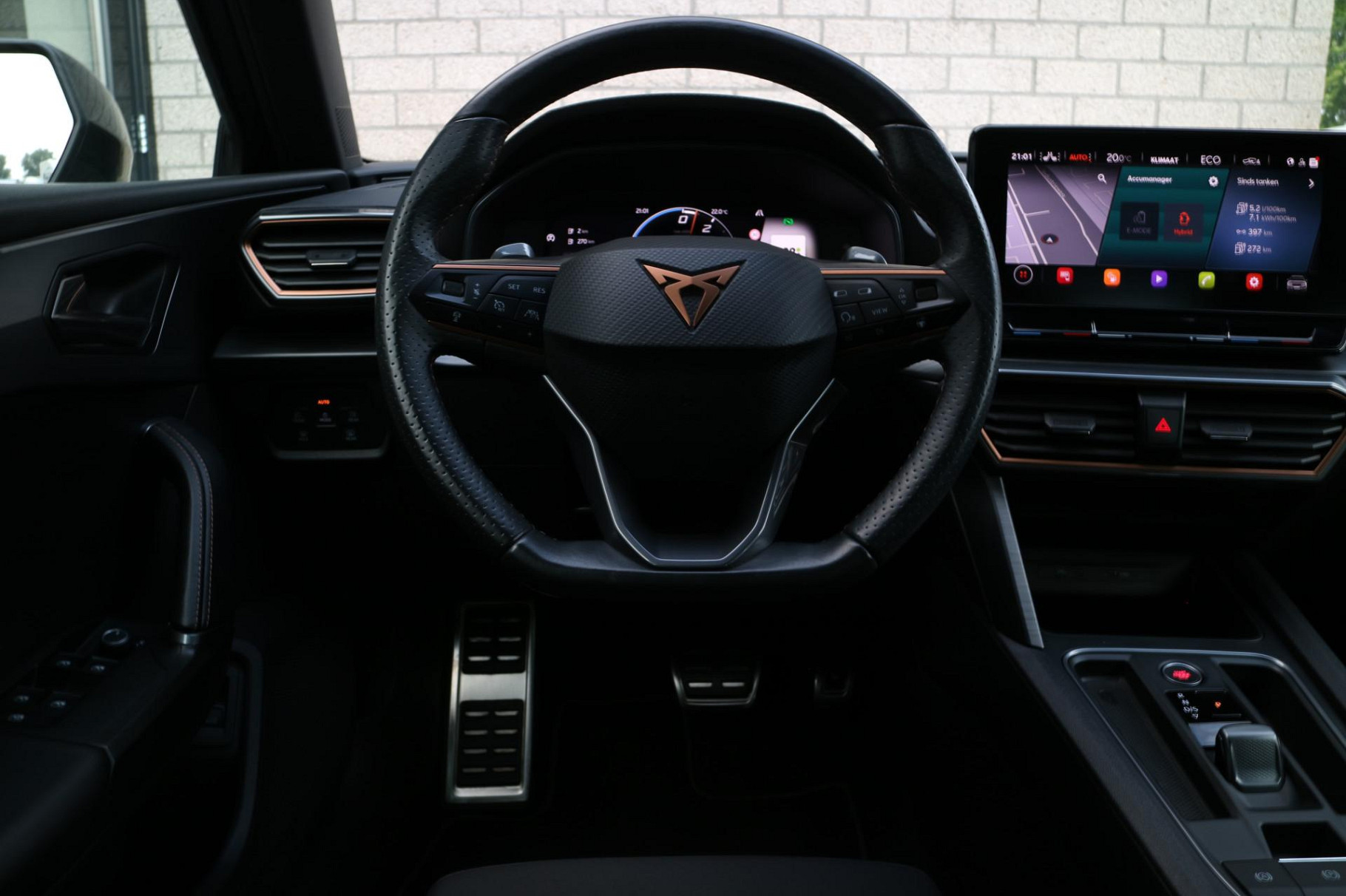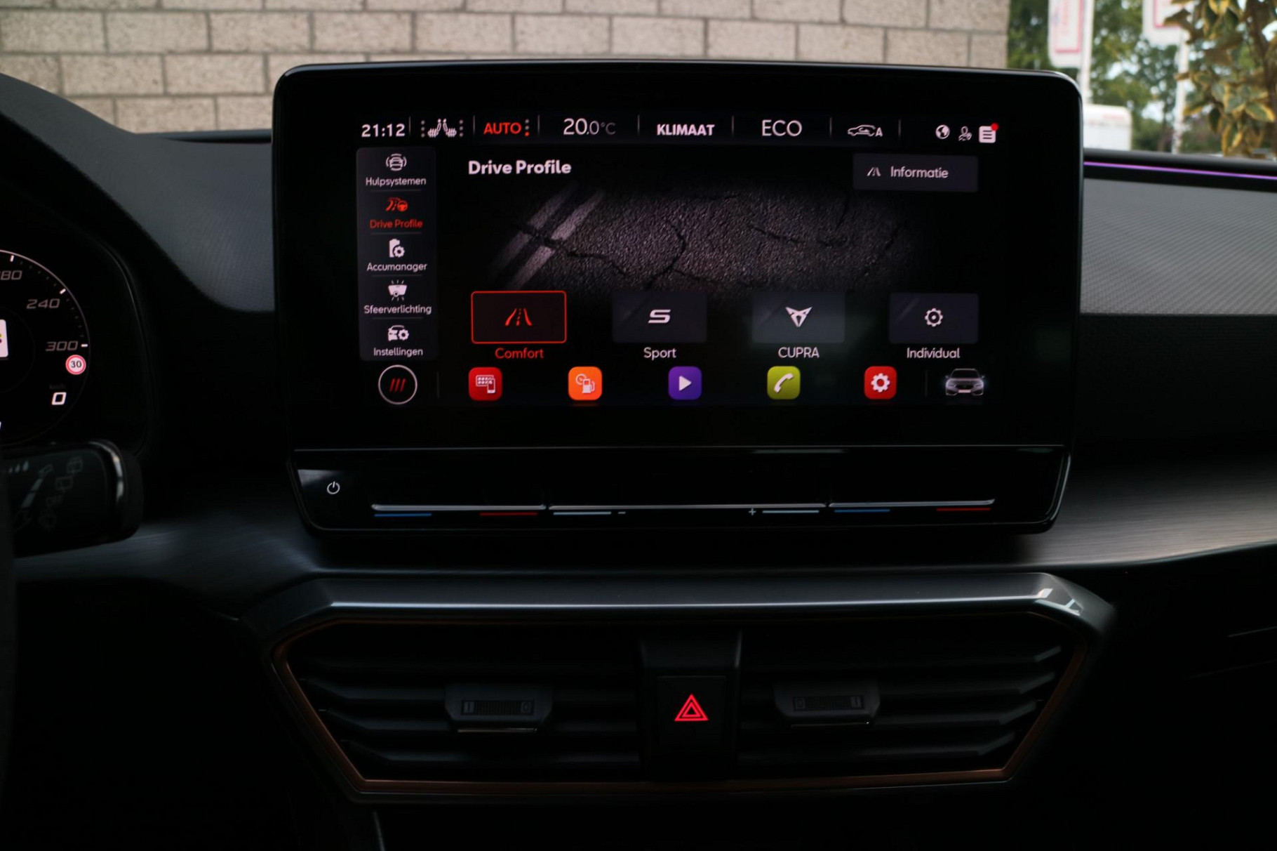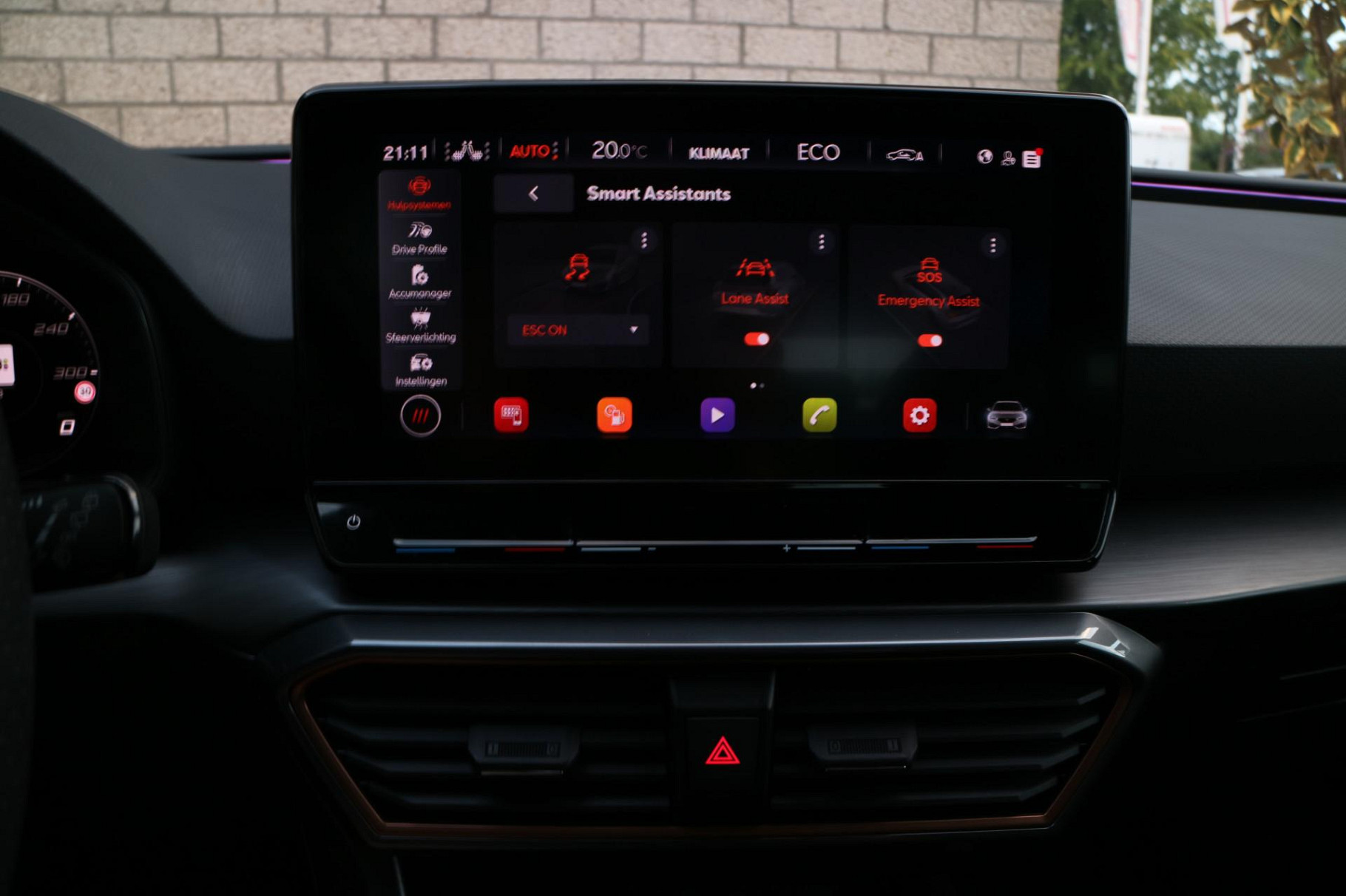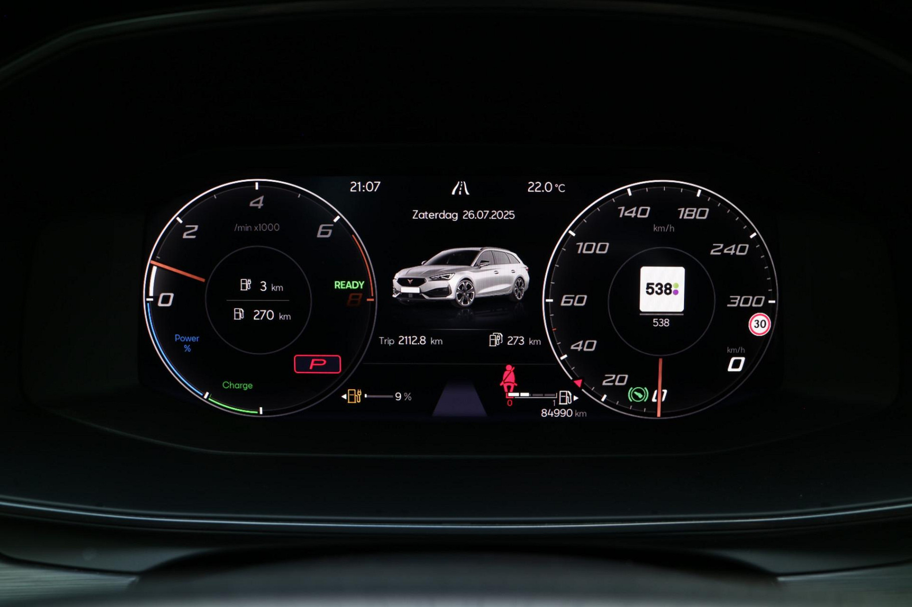 Zoals u mag verwachten van deze CUPRA Leon Sportstourer is hij uitgerust met een reeks aan actieve veiligheidssystemen. Wat deze auto ook kan, is lezen. Hij 'leest' voor u de verkeersborden tijdens de rit en attendeert u erop door ze op het dashboard te projecteren. Ongemerkt buiten de rijstrook raken? Nee hoor, het Lane-keeping systeem waarschuwt en corrigeert. Voor meer veiligheid detecteert deze auto het risico van een aanrijding tijdig via de forward collision warning. Dankzij veiligheidsvoorzieningen als dodehoekdetectie, hill hold functie, vermoeidheidsherkenning, autonoom remsysteem en bandenspanningcontrolesysteem, bent u steeds veilig onderweg.