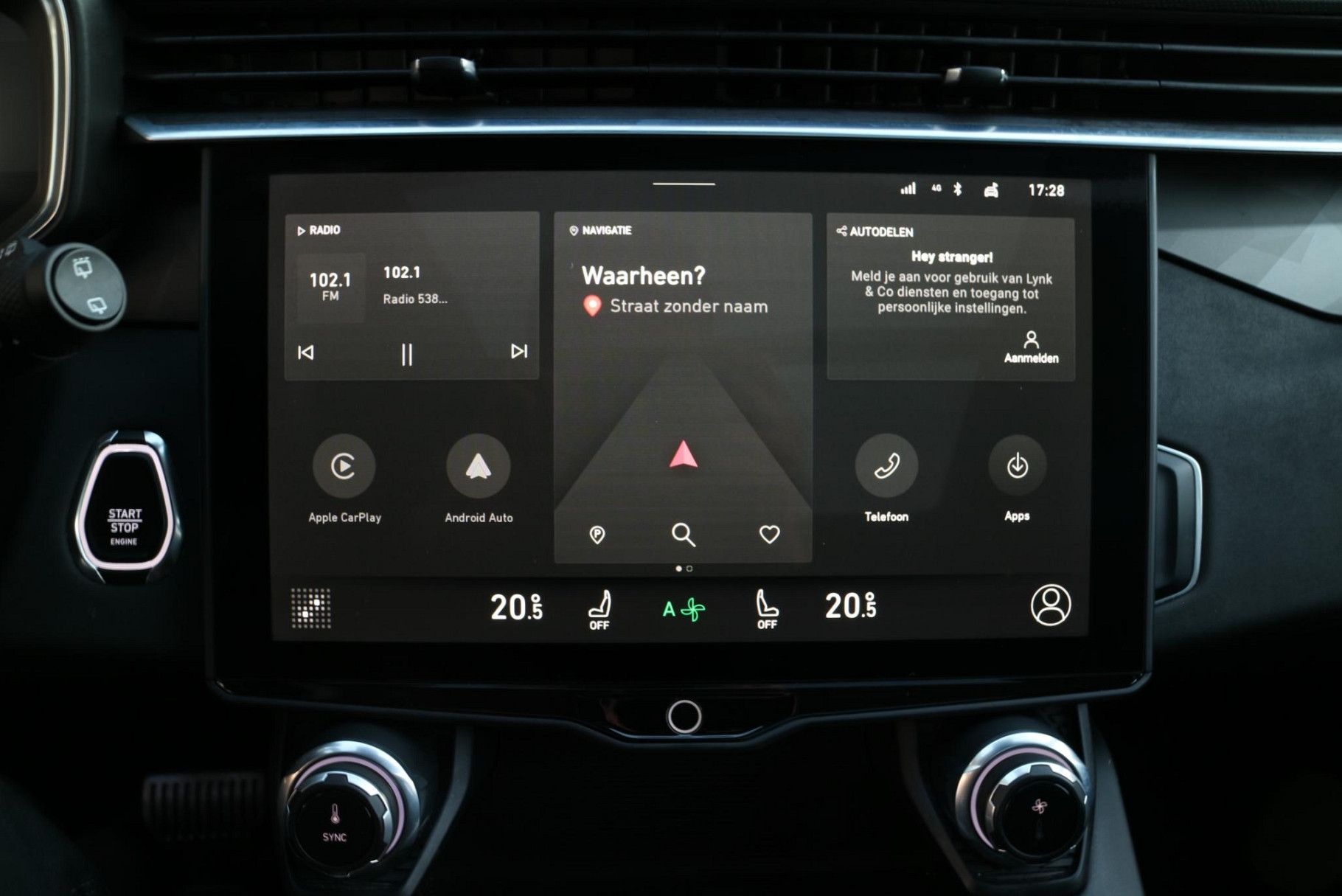 Uw rit wordt comfortabel en veilig gemaakt door het digitale dashboard dat alles projecteert wat u wenst in de digitale wereld van mobiliteit. Met adaptive cruise control houdt deze auto automatisch afstand tot uw voorligger. Na een lange werkdag in de file: daar zit niemand op te wachten. Gelukkig helpt de file assistent een handje. Het radarsysteem meet de ruimte tot de voorligger en bewaakt de juiste afstand. Stilstaan? Dan remt en stopt de auto vanzelf. Spraakbediening herkent uw stem en voert opdrachten uit terwijl u beide handen aan het stuur houdt. Het full map navigatiesysteem zorgt ervoor dat u snel en ontspannen op uw bestemming aankomt. U bent in deze Lynk & Co ook voorzien van achteropkomend verkeer waarschuwing, automatische airconditioning, draadloos opladen, DAB ontvangst, parkeersensoren achter en regensensor.