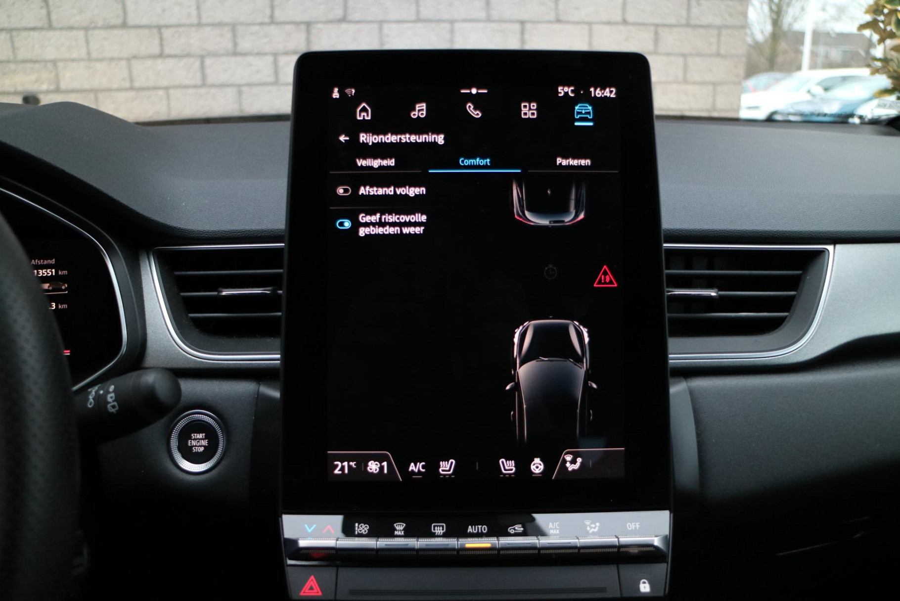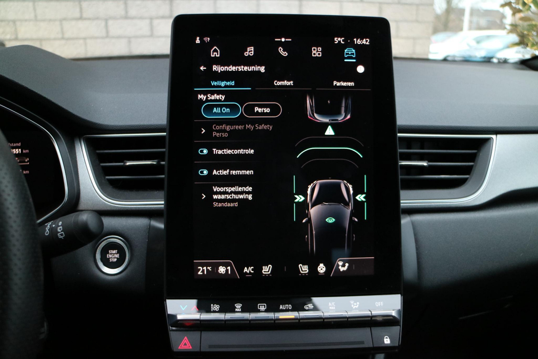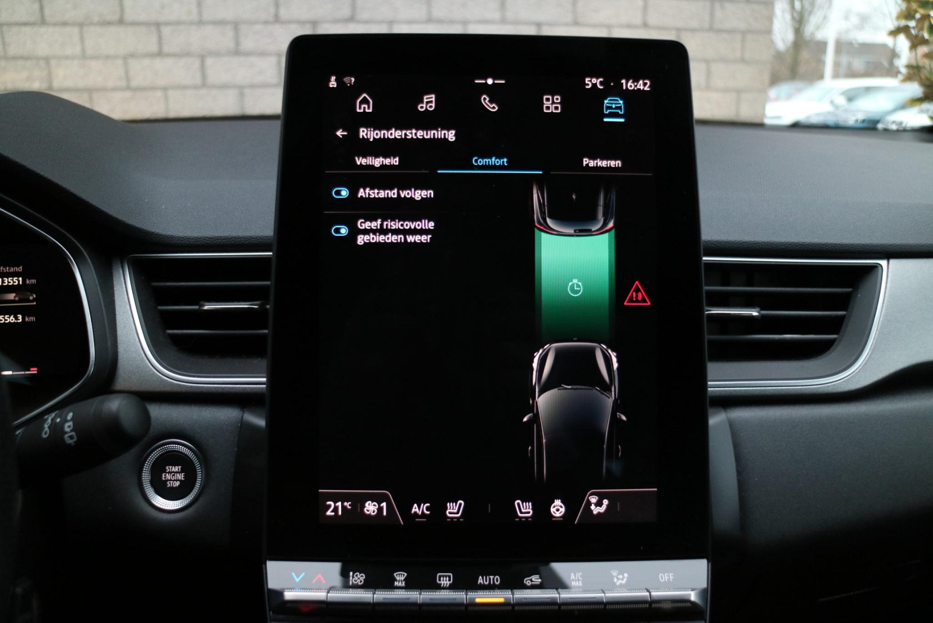 In deze auto zijn verschillende technologieën aanwezig die voor u het verkeer en de omgeving in de gaten houden en die desnoods ook kunnen remmen of bijsturen. De actuele snelheidslimiet, een inhaalverbod en andere verkeersborden. De verkeersborddetectie ondersteunt u tijdens elke rit.