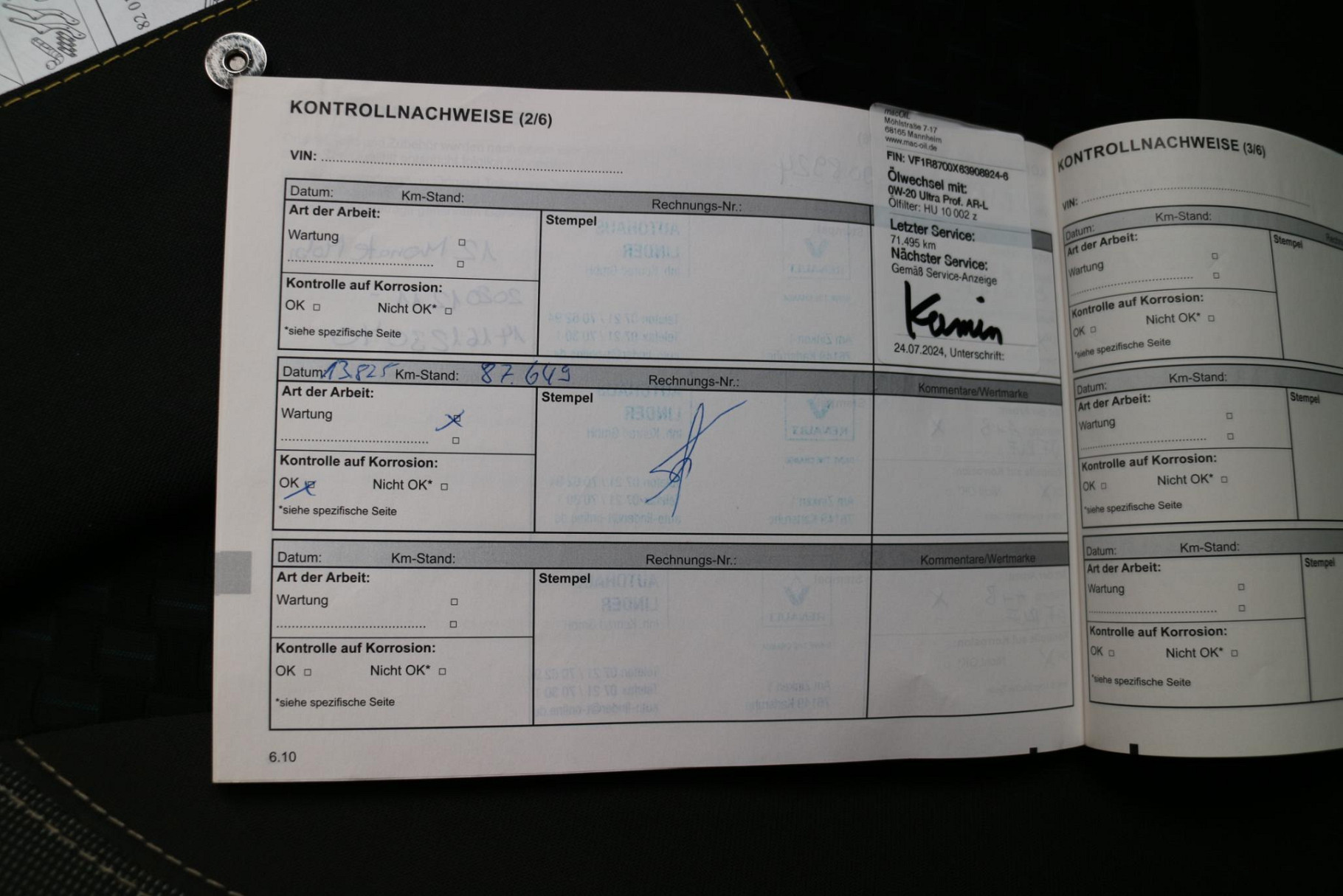 Onderhoudsboekjes: Aanwezig