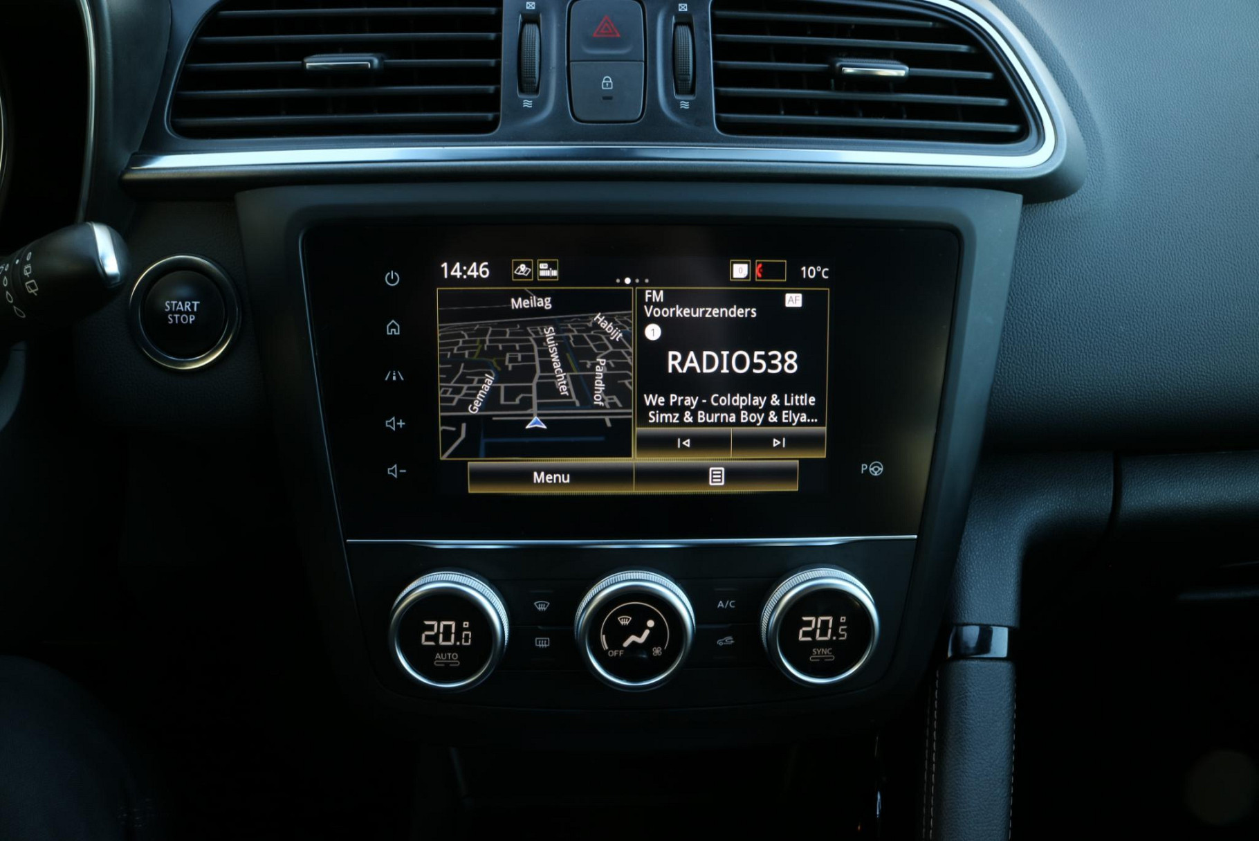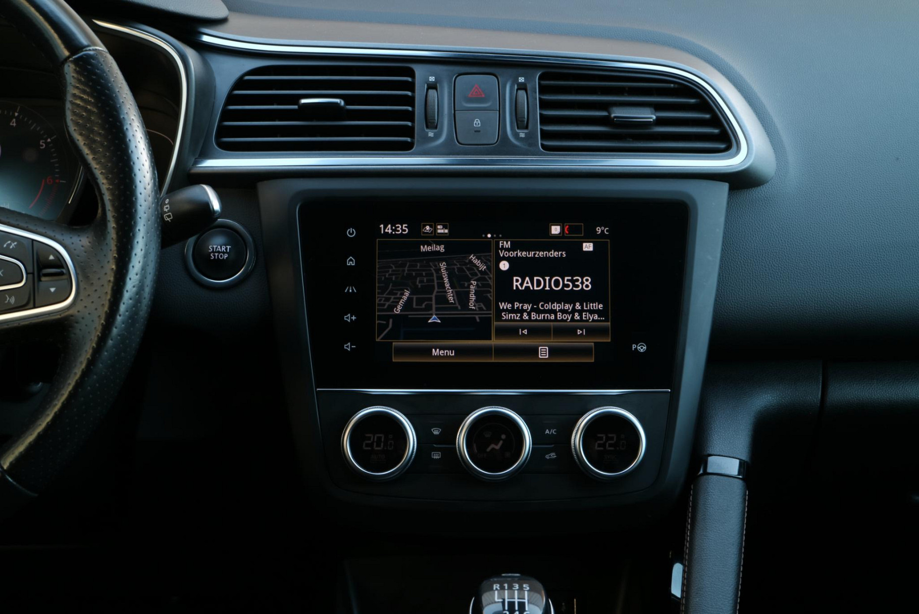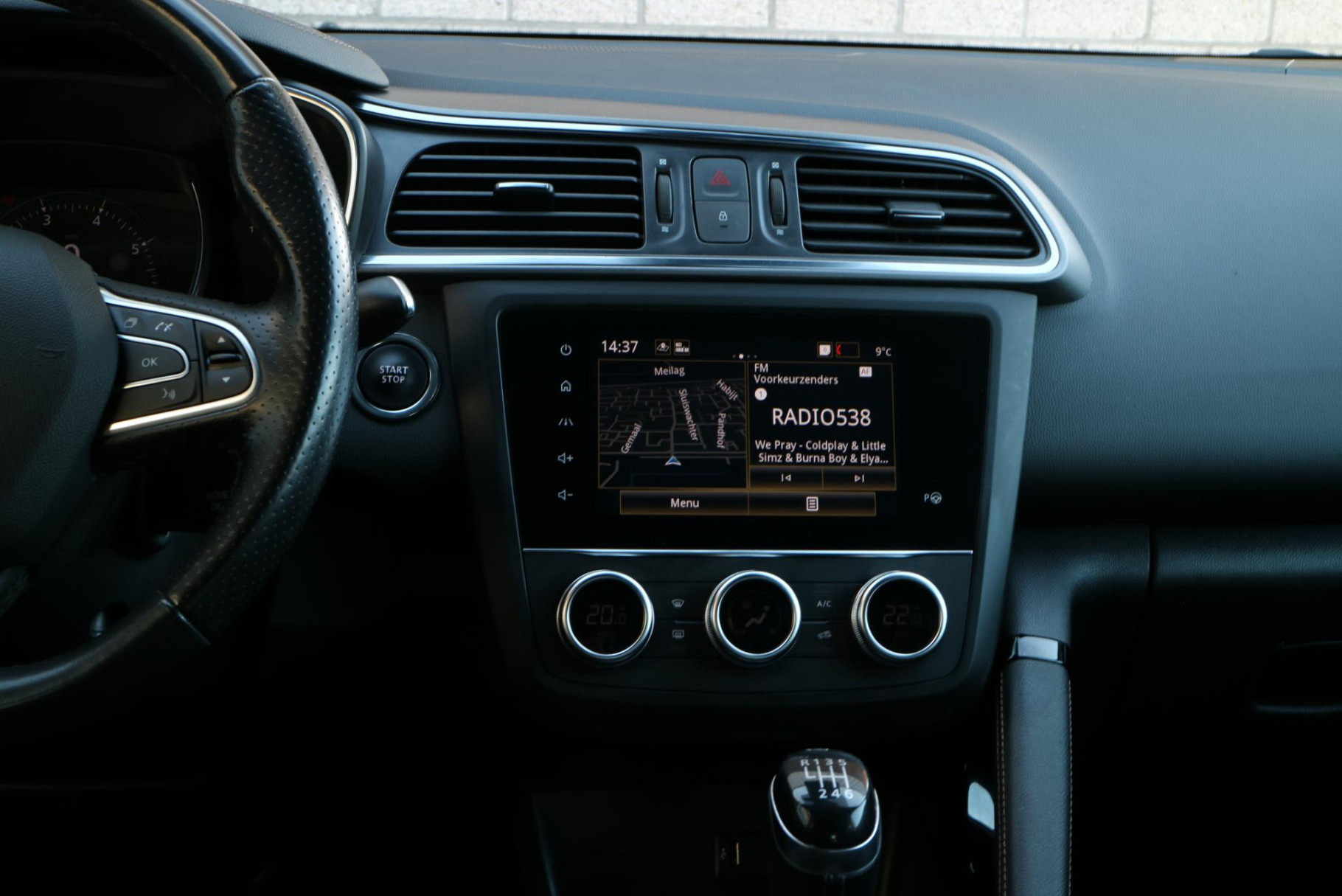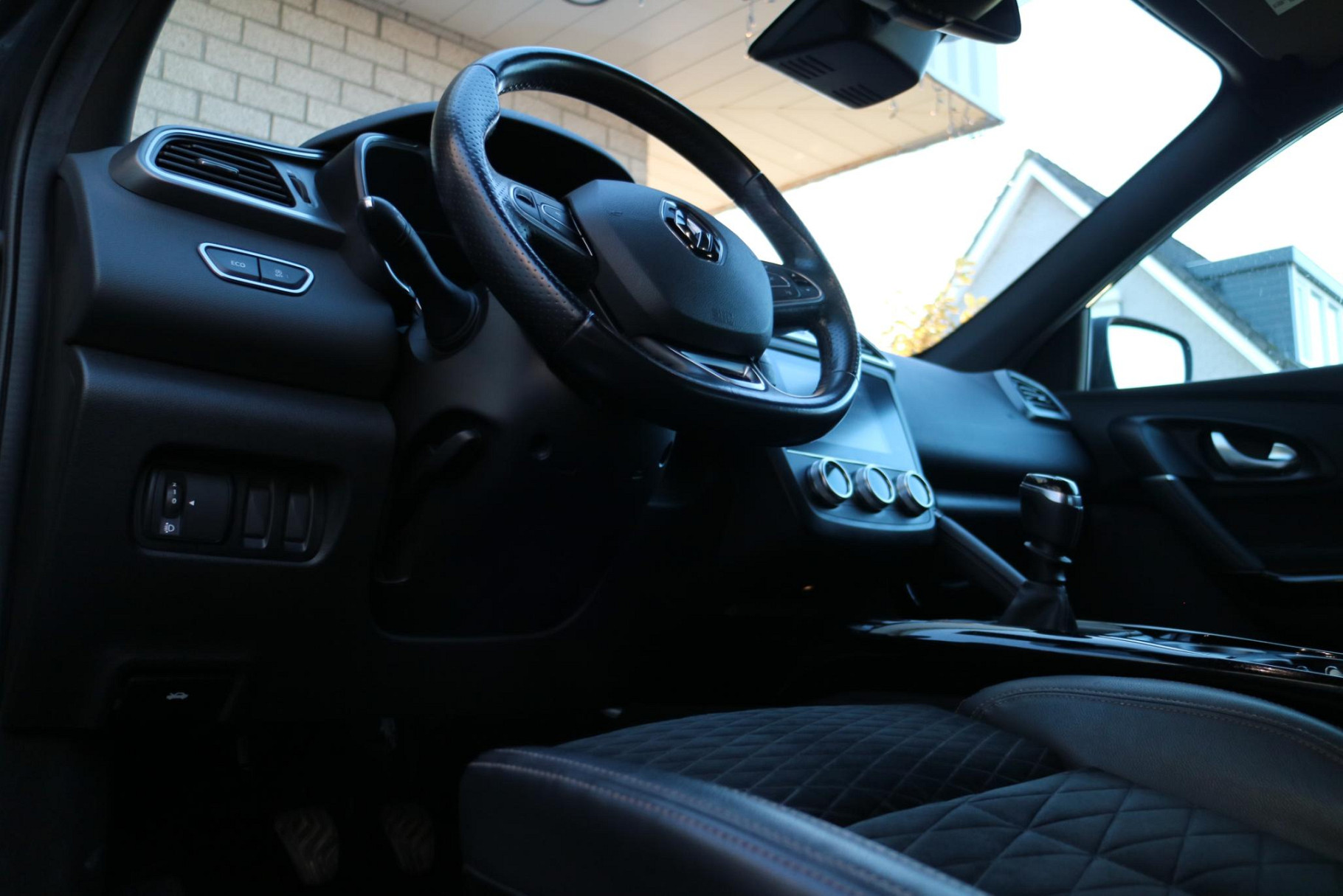 De nieuwste veiligheidssystemen komen in deze Renault Kadjar samen. De camera van de verkeersborddetectie herkent verschillende soorten verkeersborden en toont deze op het dashboard.