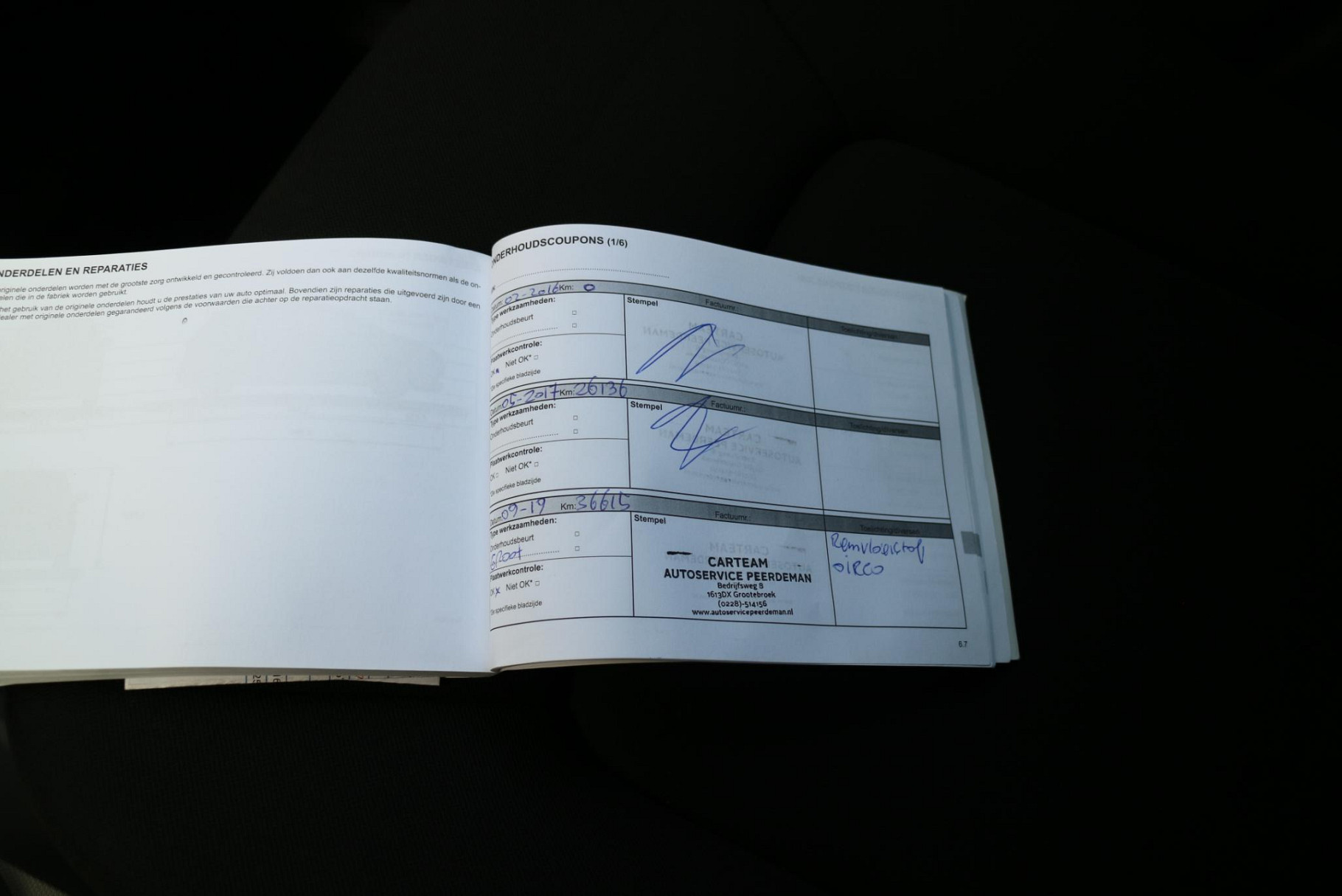 Onderhoudsboekjes: Aanwezig
