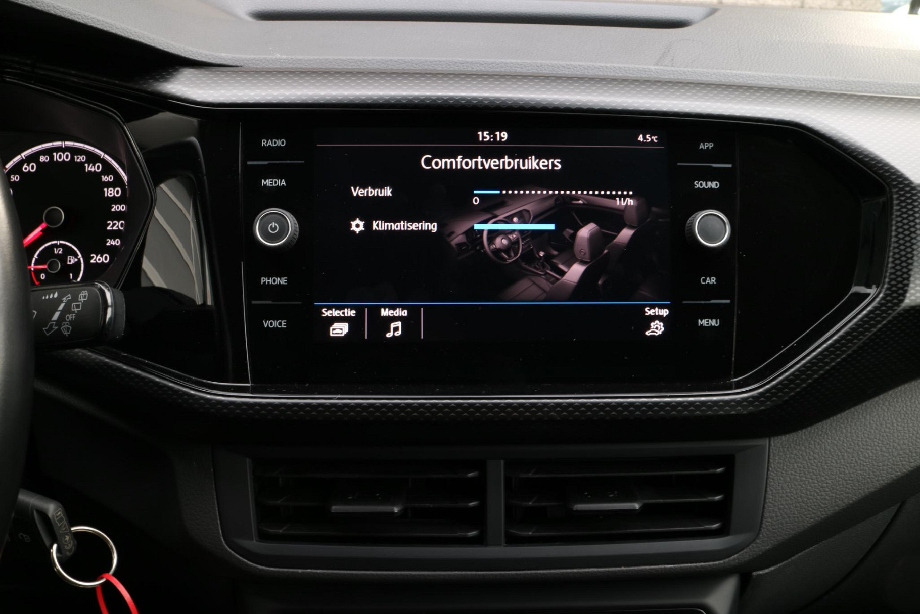 Met adaptive cruise control houdt de auto zelfstandig afstand tot uw voorligger. Een veiligheidsverhogende optie waarmee u comfortabel onderweg bent. De speciale app verbindt met Connected Services, die de status van vitale functies bijhoudt en waarschuwt als u bijvoorbeeld moet tanken, de bandenspanning moet controleren of olie moet bijvullen. Audiobediening op het stuur is aanwezig. Gemak en veiligheid voor alles, toch? De DAB-ontvanger zorgt voor een ruime keuze uit digitale radiozenders en een kristalheldere geluidsweergave. Soms heeft u meer parkeerruimte dan u denkt. Maar soms ook niet. De parkeersensoren vertellen precies hoeveel. Extra opties op deze auto zijn: regensensor, airconditioning, automatisch dimmende binnenspiegel, lederen stuur, centrale deurvergrendeling met afstandsbediening en boordcomputer.